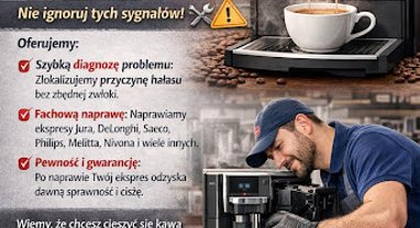 Twój ekspres do kawy wydaje niepokojące dźwięki? Głośna praca, stukanie czy szum mogą być oznaką usterki, która z czasem się pogłębia. W Aroma Serwis…